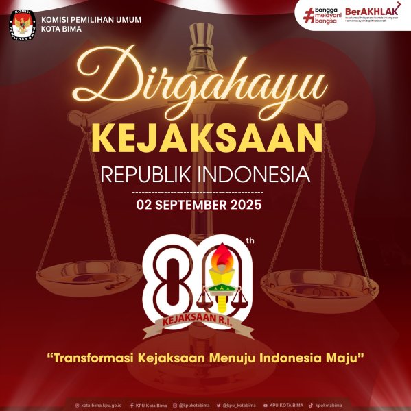 KPU Kota Bima Mengucapkan Dirgahayu Kejaksaan Republik Indonesia yang ke 80 Tahun, Jayalah selalu dalam menegakkan hukum, keadilan, dan kebenaran demi Indonesia yang bermartabat