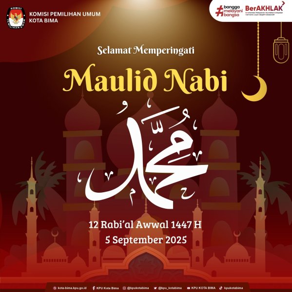 Keluarga Besar KPU Kota Bima mengucapkan Selamat Memperingati Maulid Nabi Muhammad SAW 1447 H / 5 September 2025