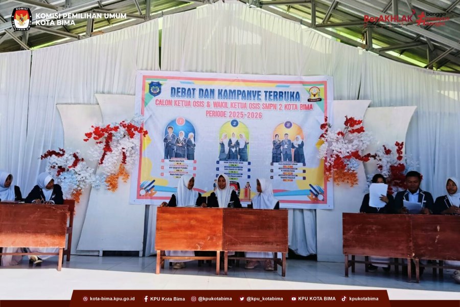 Ketua Komisi Pemilihan Umum Kota Bima, Suaeb menghadiri acara debat dan kampanye terbuka pada pemilihan ketua OSIS SMPN 2 Kota Bima (Sabtu, 13/09/2025). Pada kesempatan tersebut, ketua KPU Kota Bima turut memberikan sambutan terkait dengan pelaksanaan pemilihan ketua OSIS. Dalam sambutannya, Suaeb menyampaikan bahwa pemilihan ketua OSIS adalah ajang pembelajaran demokrasi bagi siswa, yakni belajar cara memilih seorang pemimpin sejak dini, karena kedepannya siswa SMPN 2 Kota Bima akan menjadi pemilih sekaligus calon-calon pemimpin masa depan. Untuk itu, Suaeb berpesan agar para calon ketua OSIS harus memiliki visi, misi, dan program kerja sesuai dengan visi sekolah, melaksanakan pemilihan dengan prinsip langsung, umum, bebas, rahasia, jujur dan adil, menjaga kebersamaan, menjunjung tinggi perbedaan pilihan, serta saling menghormati sesama siswa. Diakhir sambutannya, Suaeb mengapresiasi pihak SMPN 2 Kota Bima yang telah menyelenggarakan kegiatan debat terbuka sebagai ajang pembelajaran demokrasi bagi siswa.