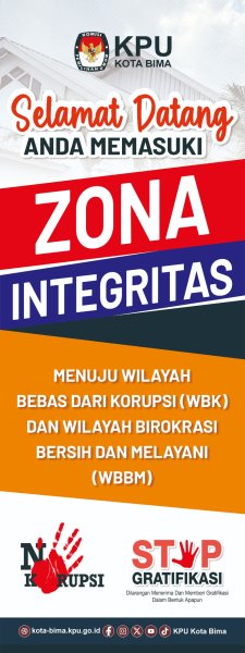 Dalam proses pembangunan Zona Integritas (ZI), KPU Kota Bima berpedoman pada Peraturan Menteri PANRB Nomor 90 Tahun 2021 tentang Pembangunan dan Evaluasi Zona Integritas Menuju Wilayah Bebas dari Korupsi (WBK) dan Wilayah Birokrasi Bersih dan Melayani (WBBM).