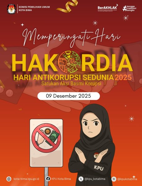 #TemanPemilih KPU Kota Bima mengucapkan Selamat Hari Anti Korupsi Sedunia 2025.