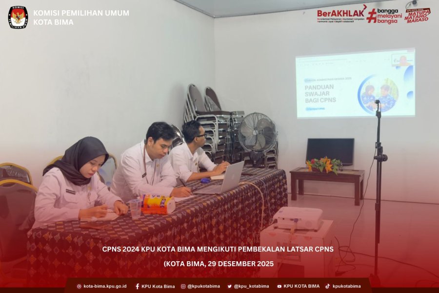 #TemanPemilih Senin, 29 Desember 2025, empat orang CPNS Formasi Tahun 2024 KPU Kota Bima mengikuti kegiatan Pembekalan Latsar CPNS yang dilaksanakan secara daring melalui Zoom Meeting.