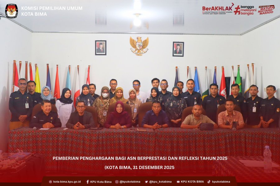 Rabu, 31 Desember 2025, KPU Kota Bima Melaksanakan Kegiatan Pemberian Penghargaan bagi ASN Berprestasi, yang juga diberikan kepada para Kasubbag atas kinerja dan kontribusi luar biasa di masing-masing subbagian. Kegiatan ini tidak hanya menjadi momentum apresiasi, tetapi juga dirangkaikan dengan refleksi akhir tahun sebagai upaya evaluasi dan perbaikan kinerja ke arah yang lebih baik.