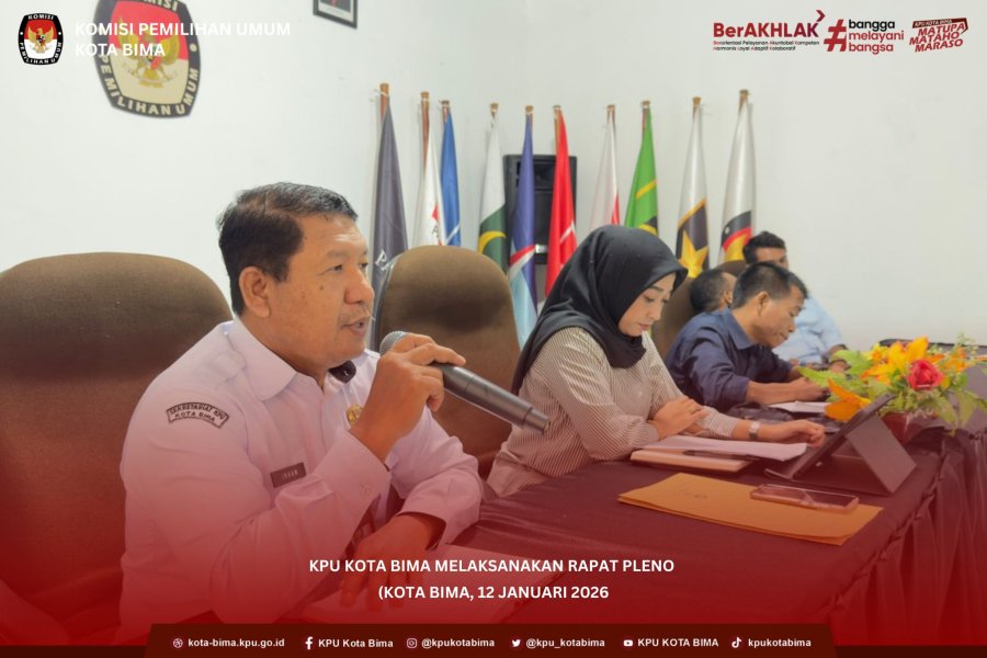 KPU Kota Bima melaksanakan Rapat Pleno Internal yang dihadiri oleh Komisioner KPU Kota Bima, Sekretaris, para Kepala Sub Bagian, serta staf terkait.