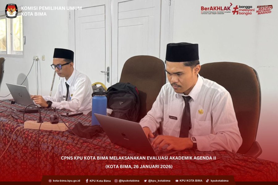 #TemanPemilih Senin, 26 Januari 2026, Empat Calon Pegawai Negeri Sipil (CPNS) Komisi Pemilihan Umum (KPU) Kota Bima mengikuti Evaluasi Akademik Agenda II yang dilaksanakan di Aula Matupa, Mataho Ro Maraso KPU Kota Bima.