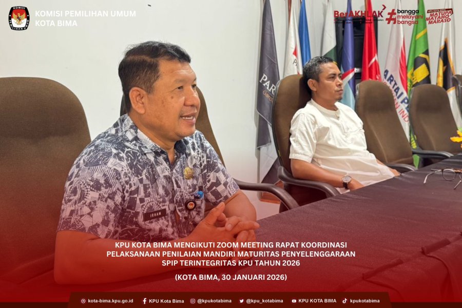 #TemanPemilih, Jumat, 30 Januari 2026, Komisi Pemilihan Umum (KPU) Kota Bima mengikuti Zoom Meeting Rapat Koordinasi Pelaksanaan Penilaian Mandiri Maturitas Penyelenggaraan Sistem Pengendalian Intern Pemerintah (SPIP) Terintegrasi KPU Tahun 2026.