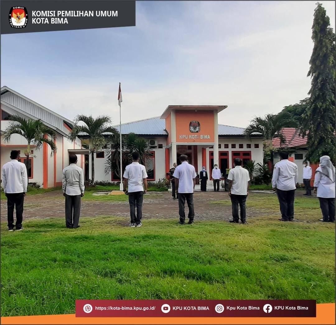 #TemanPemilih, Senin (10/1/2022) Komisi Pemilihan Umum Kota Bima melaksanakan apel pagi. Hari ini Ketua KPU Kota Bima, Mursalin,S.Pd bertindak sebagai pembina apel.