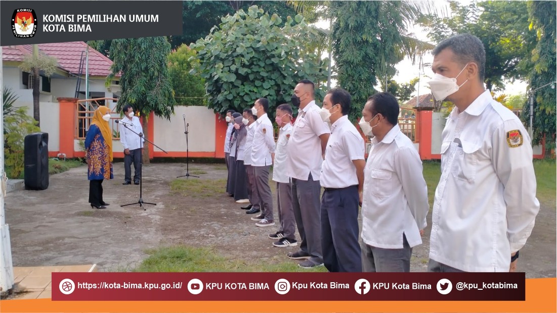 #Temanpemilih, Seperti biasa, hari Senin (7/ 3/ 2022) Komisi Pemilihan Umum Kota Bima melaksanakan apel pagi, bertempat di halaman kantor KPU Kota Bima. Kali ini, Ketua Divisi Sosialisasi, Pendidikan Pemilih, Partisipasi Masyarakat dan SDM KPU Kota Bima, Yety Safriati bertindak sebagai pembina Apel.