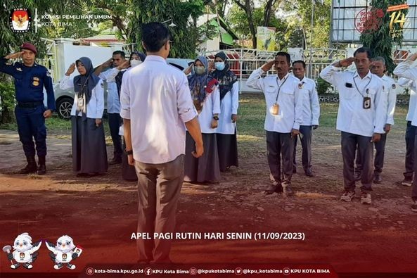 #Temanpemilih, (Senin,11/8/2023) Bertempat di halaman Kantor KPU Kota Bima, Sekretaris bersama Pejabat Struktural dan Staf melaksanakan Apel pagi rutin yang dilaksanakan setiap hari Senin.