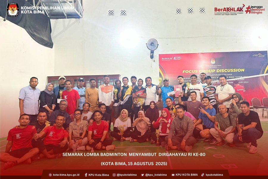 Hai #TemanPemilih Jumat, 15 Agustus 2025 – Suasana semarak masih terasa dalam rangkaian Turnamen Bulu Tangkis se-Pulau Sumbawa yang digelar oleh KPU Kota Bima dalam rangka memeriahkan Hari Ulang Tahun ke-80 Republik Indonesia Tahun 2025. Setelah berlangsung selama dua hari penuh, pertandingan akhirnya mencapai babak final yang disambut antusias oleh seluruh peserta dan penonton.