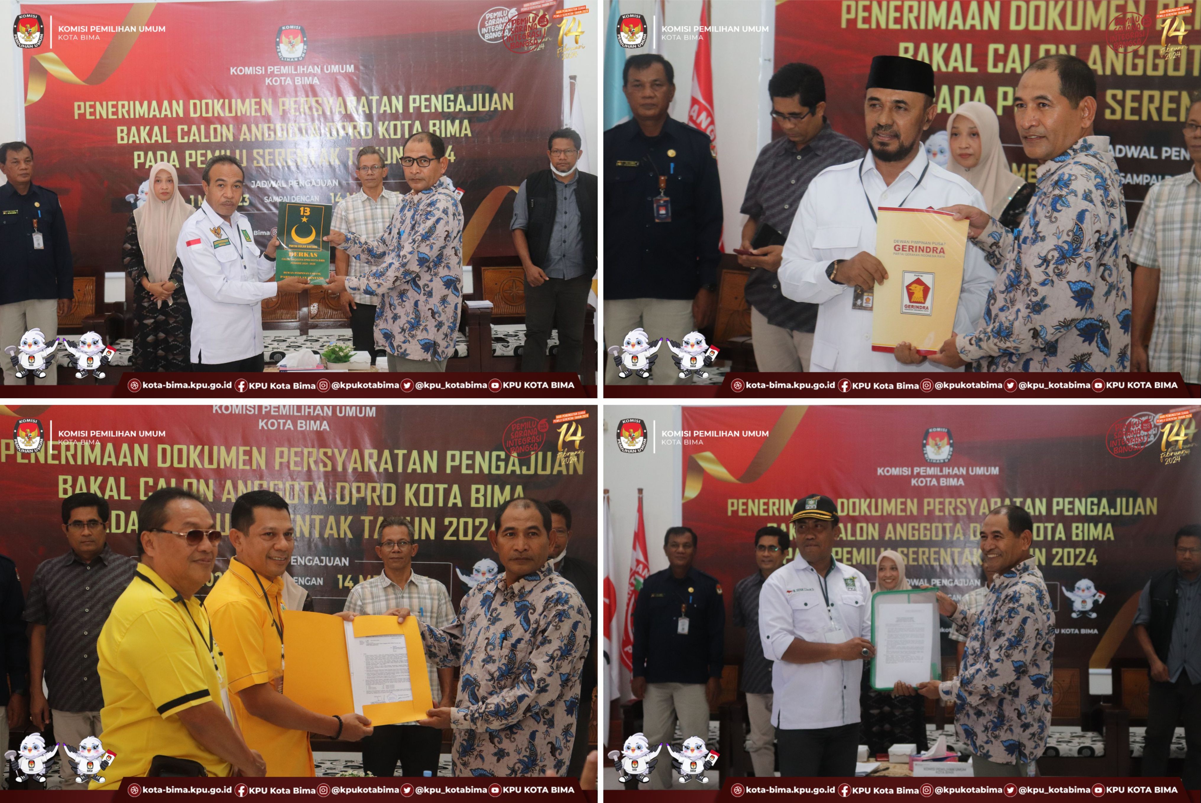 Mursalin menjelaskan, dari empat Partai Politik tersebut, tiga Partai Politik yaitu PBB, Golkar dan PKB status pengajuannya diterima dan lengkap. Sementara untuk Partai Gerindra statusnya dikembalikan, karena belum melakukan pengajuan Bakal Calon Anggota DPRD Kota Bima pada Aplikasi SILON Parpol.