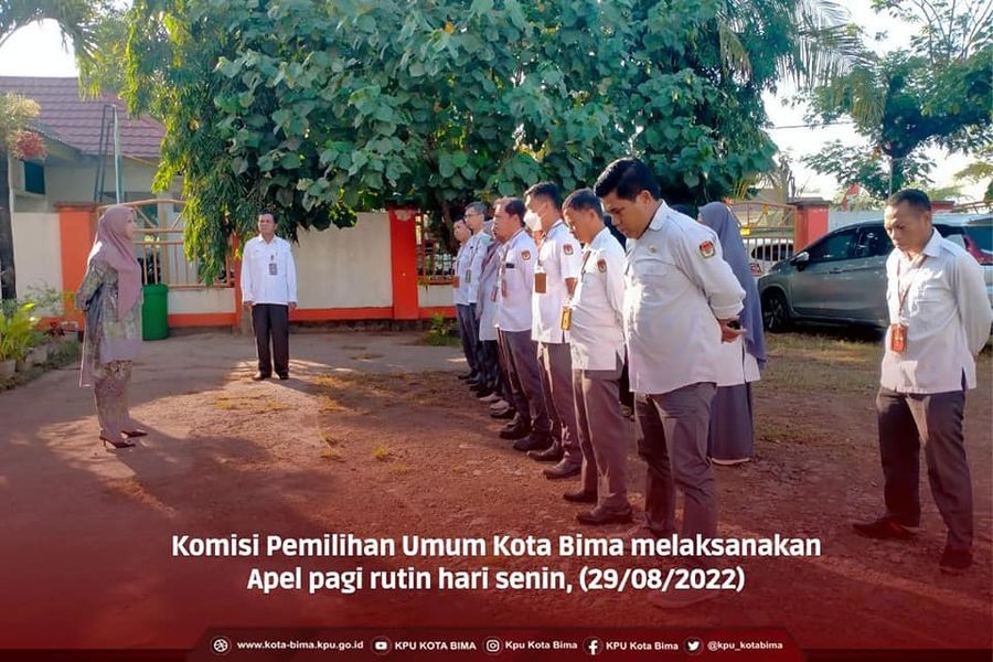 KOTA BIMA,- #TemanPemilih, Senin (29/8/2022) Komisi Pemilihan Umum Kota Bima melaksanakan kegiatan apel pagi, bertempat di halaman Kantor KPU Kota Bima. Ketua Divisi Sosialisasi, Pendidikan Pemilih, Partisipasi Masyarakat dan SDM KPU Kota Bima, Yety Safriati, S.Sos bertindak sebagai pembina apel.