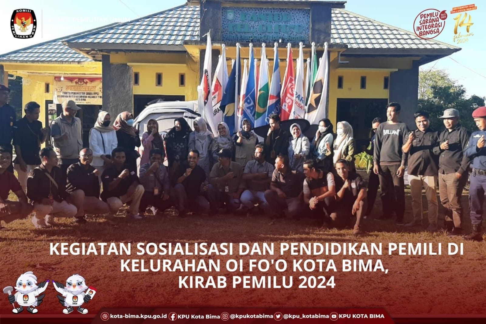 Mobil kirab menuju Kelurahan Oi Fo'o melewati Kelurahan Penatoi, Kelurahan Penaraga, Kelurahan Rabadompu Barat, Kelurahan Rabadompu Timur, dan Kelurahan Kumbe. Kegiatan sosialisasi Tahapan Penyelenggaraan Pemilu di Kelurahan Oi Fo'o, KPU Kota Bima bekerja sama dengan Pemerintah Kelurahan Oi Fo'o dan penyelenggara Pemilu di Kelurahan Oi Fo'o yaitu PPS Kelurahan Oi Fo'o. Dengan sasaran sosialisasi, Segmen Pemilih Perempuam, Pemilih Tokoh Agama, Pemilih Tokoh Masyarakat, Pemilih Muda dan Pemula.