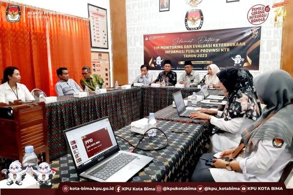 Provinsi NTB melakukan Monitoring dan Evaluasi Pelaksanaan Keterbukaan Informasi Publik (KIP) di Kantor Komisi Pemilihan Umum Kota Bima, Senin (6/11/2023). Monev tersebut merupakan kegiatan rutin yang dilaksanakan oleh KI Provinsi NTB setiap menjelang Penganugerahan Keterbukaan Informasi Publik setiap tahun.