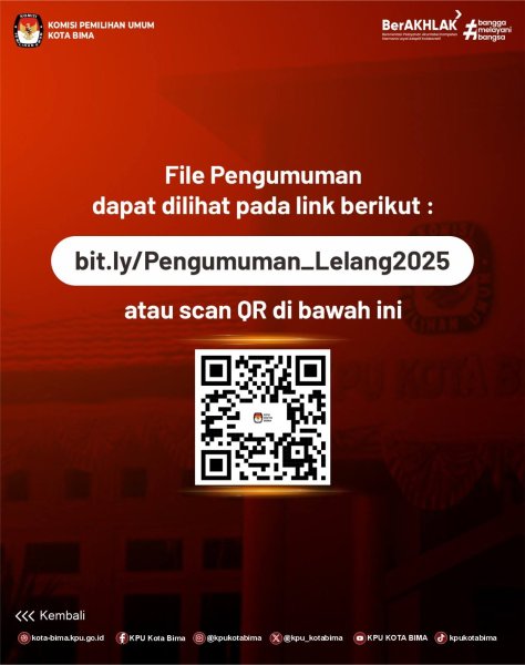 Komisi Pemilihan Umum Kota Bima menyampaikan Pengumuman Lelang Nomor: 323/RT.01.3-Pu/5272/1/2025