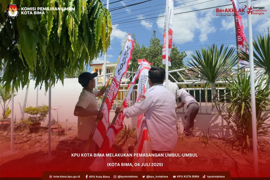 Komisi Pemilihan Umum (KPU) Kota Bima melaksanakan kegiatan pemasangan umbul-umbul di lingkungan kantor.