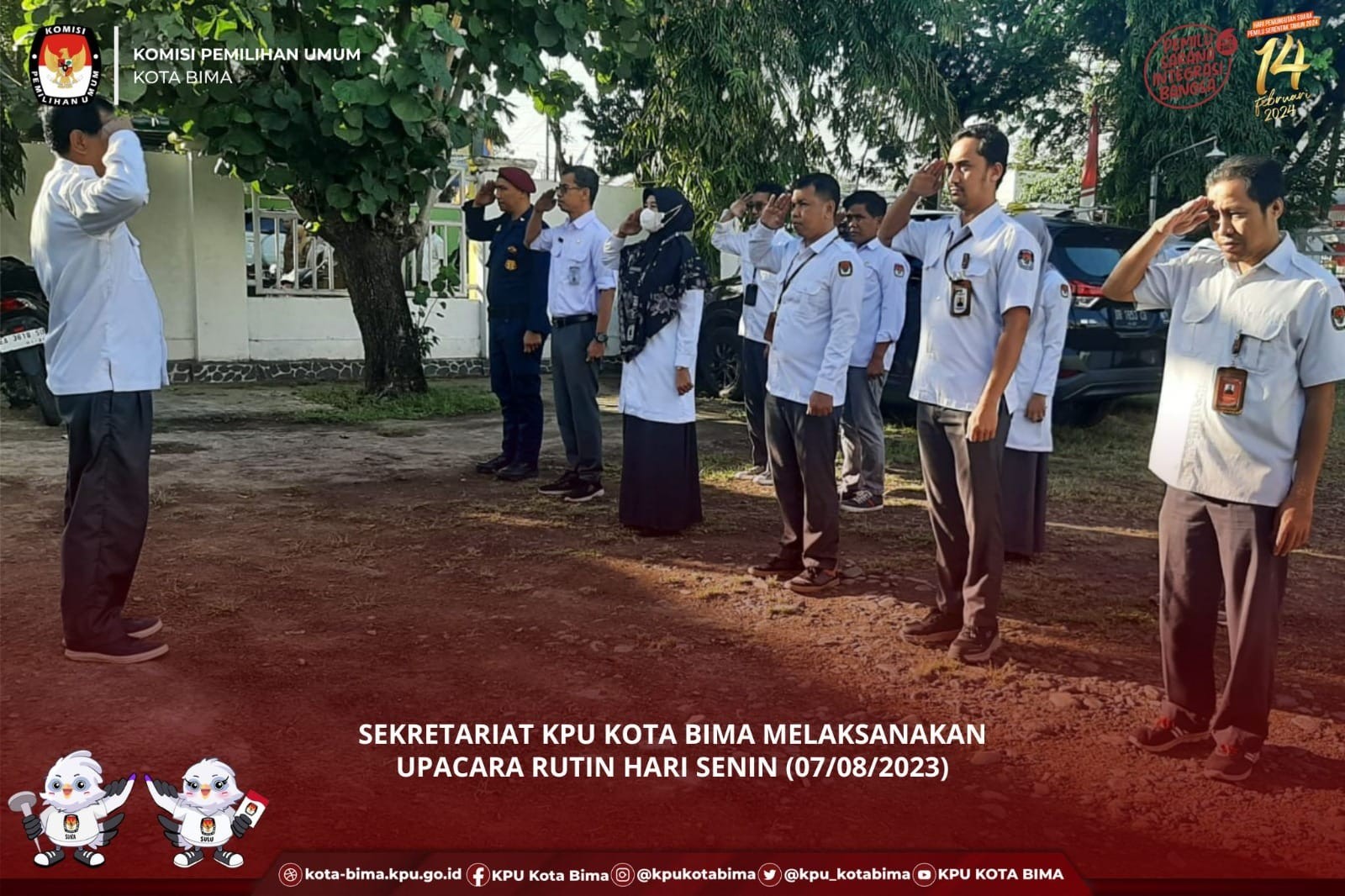 #Temanpemilih, Senin (7/8/2023) Komisi Pemilihan Umum melaksanakan Apel rutin. Dipimpin langsung oleh Sekretaris diikuti oleh Pejabat Struktural, dan staf Sekretariat KPU Kota Bima.