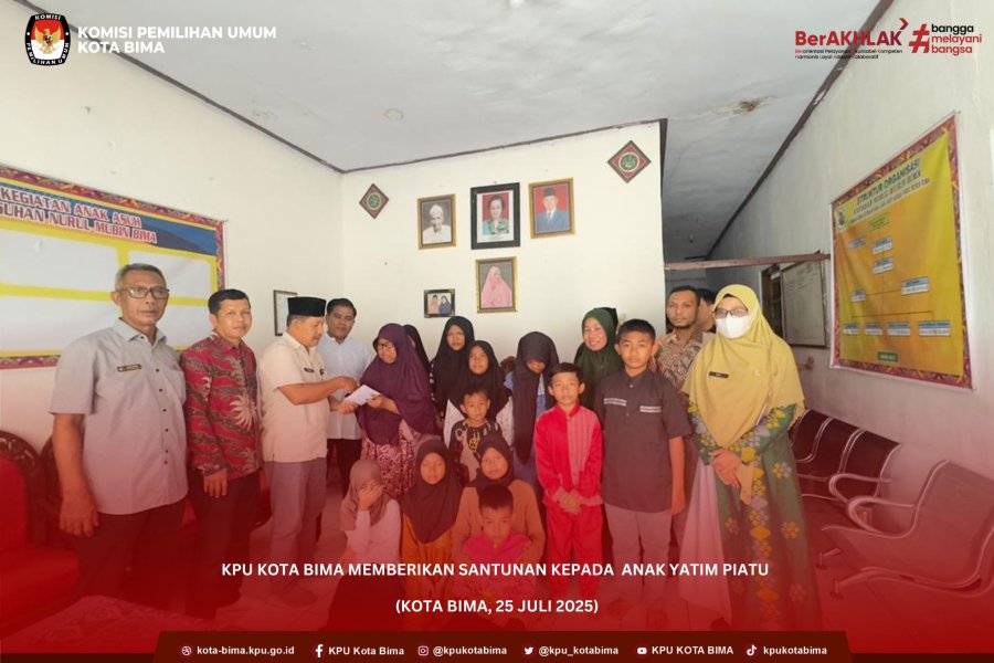 Sebagai wujud kepedulian sosial dan semangat kebersamaan, Komisi Pemilihan Umum (KPU) Kota Bima melaksanakan kegiatan pemberian santunan kepada anak-anak yatim yang berada di Pesantren Nurul Mubin, Kota Bima.