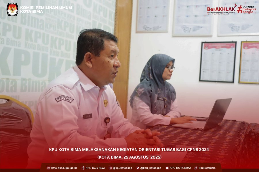 #TemanPemilih Senin, 25 Agustus 2025 Komisi Pemilihan Umum (KPU) Kota Bima melaksanakan kegiatan Orientasi Tugas bagi Calon Pegawai Negeri Sipil (CPNS) Formasi Tahun 2024. Kegiatan ini bertujuan untuk memberikan pemahaman mendasar mengenai tugas pokok dan fungsi kelembagaan, serta membekali CPNS agar dapat melaksanakan tanggung jawab dengan baik di lingkungan kerja KPU Kota Bima.