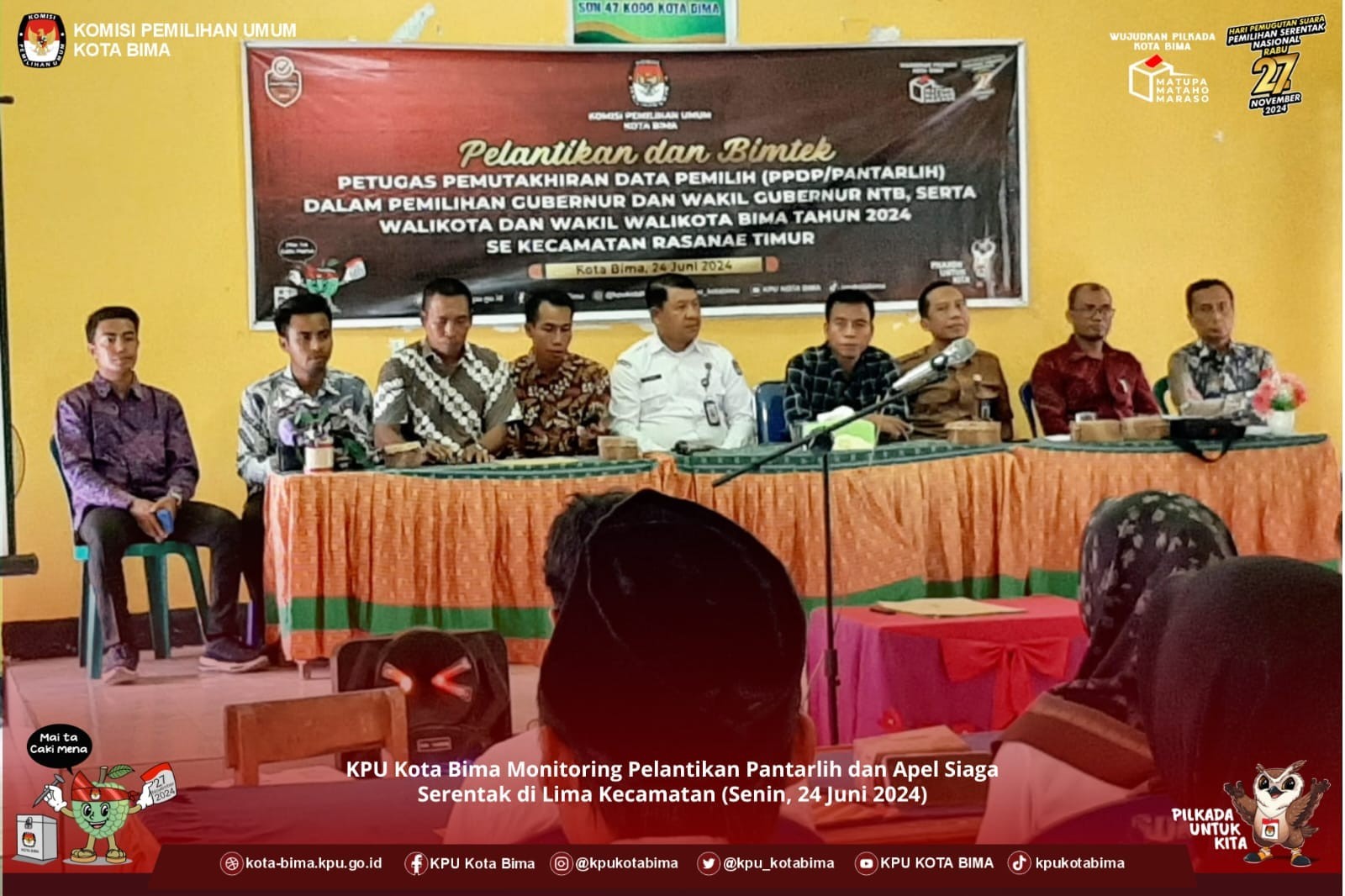 #Temanpemilih, Komisi Pemilihan Umum Kota Bima melaksanakan monitoring Pelantikan dan Apel siaga serentak Pantarlih sebanyak 423 orang yang tersebar pada 5 Kecamatan Se- Kota Bima. (Senin,24/6/2024)