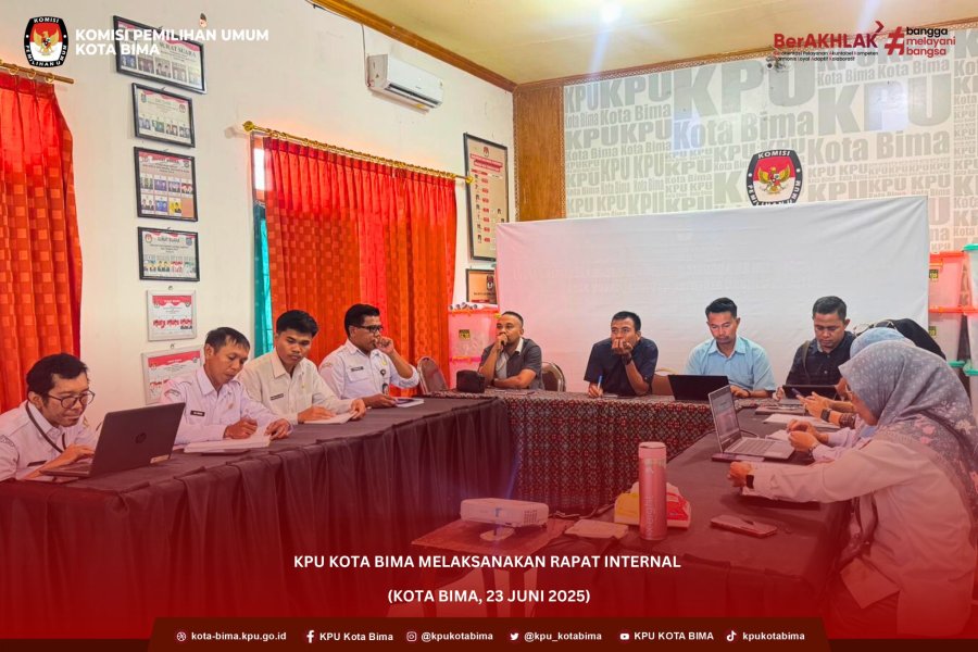 #TemanPemilih Senin, 23 Juni 2025 — Komisi Pemilihan Umum (KPU) Kota Bima melaksanakan rapat internal yang membahas beberapa agenda strategis kelembagaan. Salah satu pokok pembahasan utama dalam rapat ini adalah penyusunan Buku Pemilu dan Pilkada Tahun 2024 sebagai bentuk dokumentasi sekaligus pertanggungjawaban atas seluruh tahapan penyelenggaraan Pemilu dan Pilkada serentak tahun 2024.