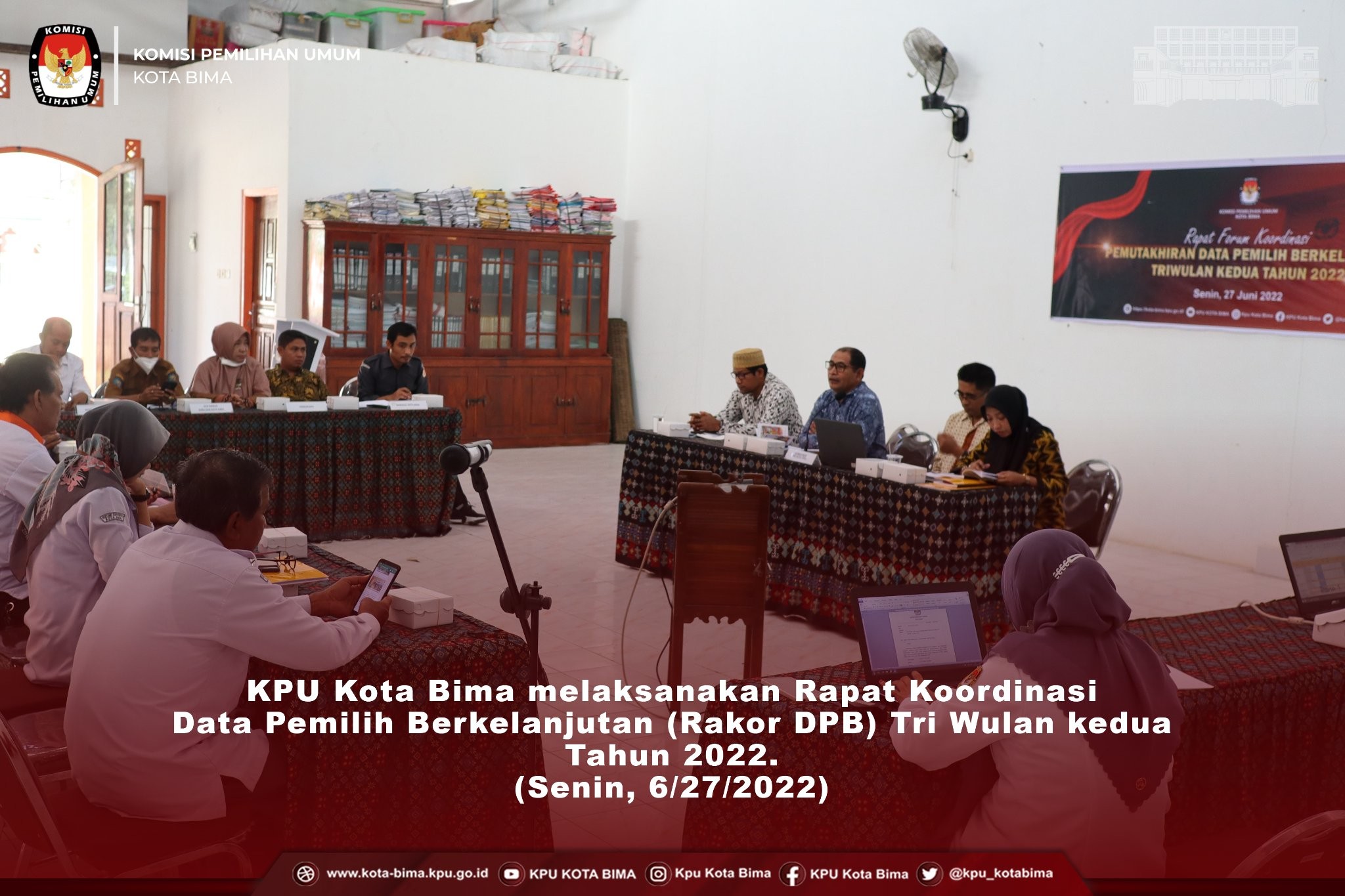 KPU Kota Bima melaksanakan Rapat Koordinasi Data Pemilih Berkelanjutan (Rakor DPB) Tri Wulan kedua Tahun 2022.