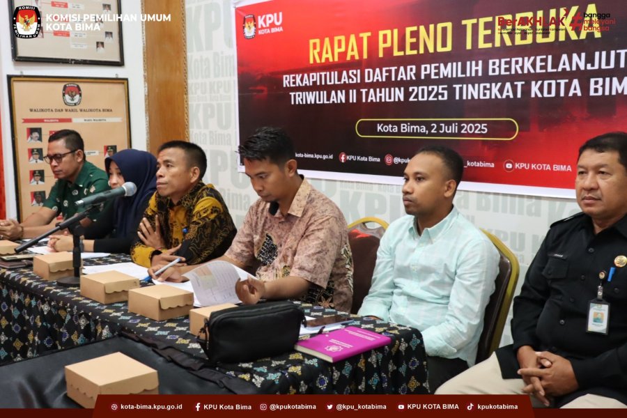 Dari hasil rekapitulasi yang disampaikan dalam Rapat Pleno Terbuka tersebut, jumlah pemilih pada Pemutakhiran Data Pemilih Berkelanjutan Triwulan II Tahun 2025 untuk wilayah Kota Bima dengan Total keseluruhan Jumlah Pemilih Triwulan II Tahun 2025 sebanyak 114.920 pemilih yang tersebar di Kecamatan Mpunda: 23.998 pemilih, Kecamatan Rasanae Barat: 21.731 pemilih, Kecamatan Asakota: 25.627 pemilih, Kecamatan Rasanae Timur: 14.300 pemilih dan Kecamatan Raba: 29.264 pemilih