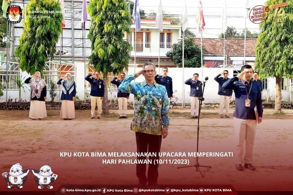 #Temanpemilih, KPU Kota Bima melaksanakan Upacara Peringatan Hari Pahlawan ke-78 tahun 2023, (Jum'at 10/11/2023) yang bertempat di halaman kantor KPU Kota Bima, dengan tema" Semangat Pahlawan untuk masa depan bangsa dalam memerangai kemiskinan dan kebodohan".