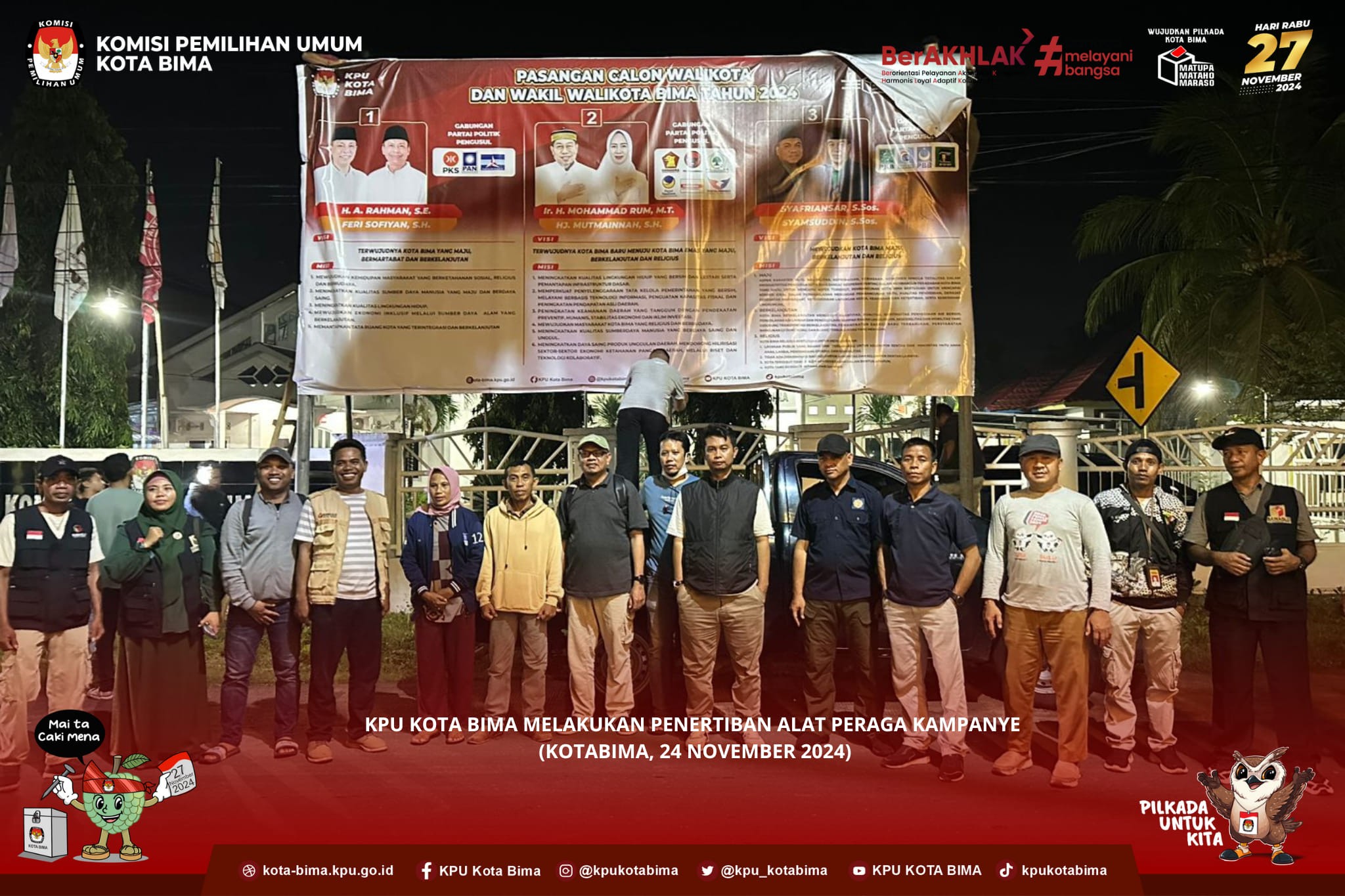 KOTA BIMA,- KPU Kota Bima mengomandai Penertiban APK untuk pemilihan Gubernur dan Wakil Gubernur NTB serta Walikota dan Wakil Walikota Bima Tahun 2024. Secara simbolis, penertiban APK dilakukan di sejumlah tempat tepat pada Sabtu (24/11/2024) Pukul 00.00 Wita.