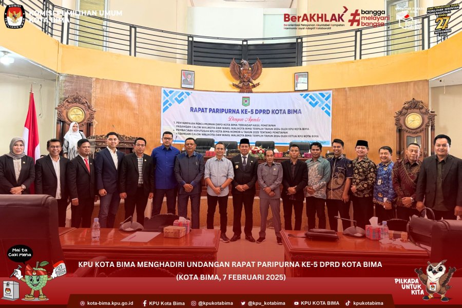 KPU Kota Bima menghadiri undangan Rapat Paripurna DPRD Kota Bima Dalam Rangka pengumuman Pengesahan Pengangkatan Pasangan Calon (Paslon) Walikota dan Wakil Walikota Bima Terpilih Periode 2025