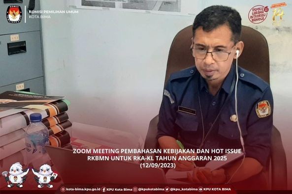 #Temanpemilih, Selasa (12/8/2023) KPU Kota Bima mengikuti kegiatan Zoom meeting Rapat pembahasan kebijakan dan Hot Issue RKBMN untuk RKA-KL tahun anggaran 2025, dalam rangka penyusunan dan penyampaian Rencana Kebijakan Barang Milik Negara (RKBMN) tahun anggaran 2023.