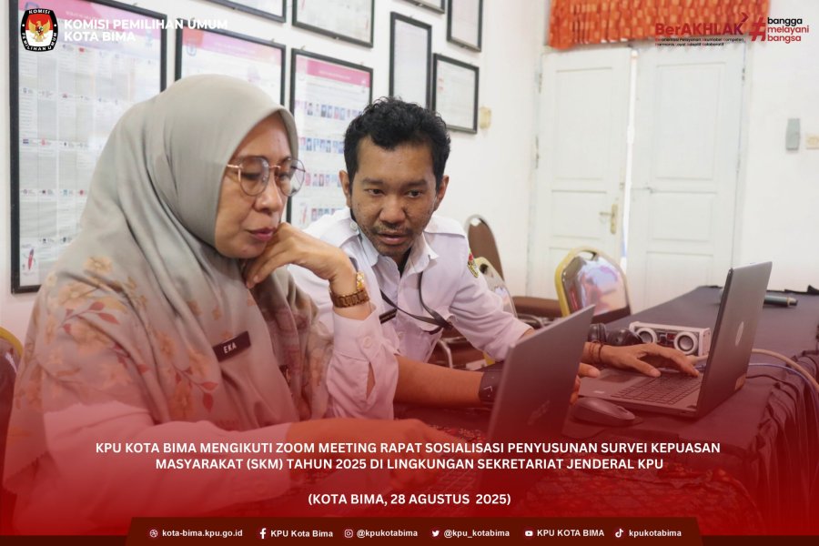 #TemanPemilih Kamis, 28 Agustus 2025 Komisi Pemilihan Umum (KPU) Kota Bima mengikuti Zoom Meeting Rapat Sosialisasi Penyusunan Survei Kepuasan Masyarakat (SKM) Tahun 2025 yang diselenggarakan oleh Sekretariat Jenderal KPU RI.