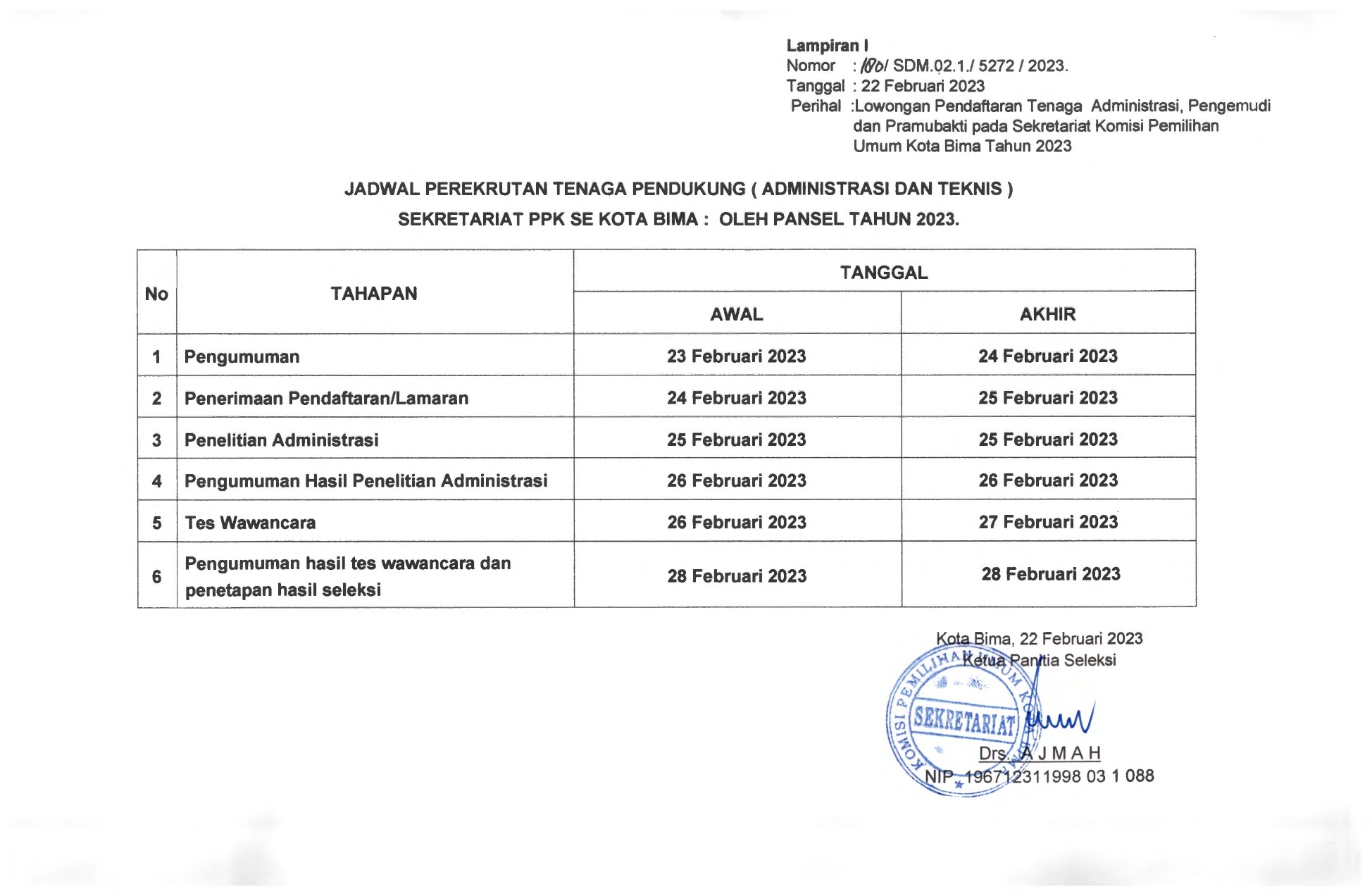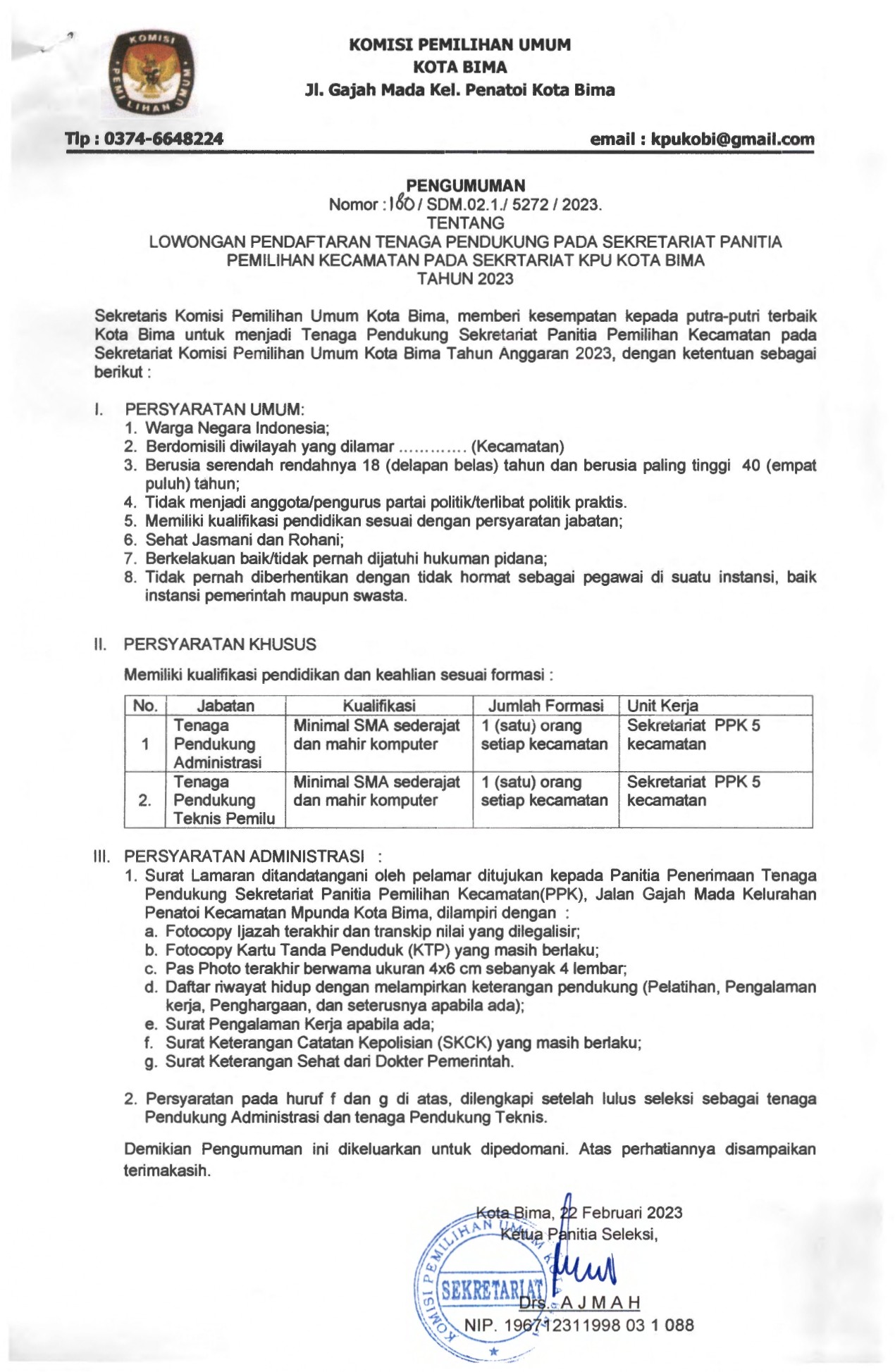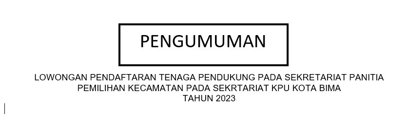 LOWONGAN PENDAFTARAN TENAGA PENDUKUNG PADA SEKRETARIAT PANITIA PEMILIHAN KECAMATAN PADA SEKRTARIAT KPU KOTA BIMA TAHUN 2023