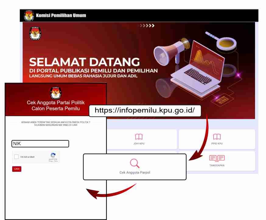 “Klik laman infopemilu.kpu.go.id , kemudian klik menu Cek Anggota Parpol, selanjutnya akan muncul kolom pengetikan NIK. Setelah itu, anda mengektik NIK dan mencentang pada kolom I’m not a robot,” jelas Mursalin.