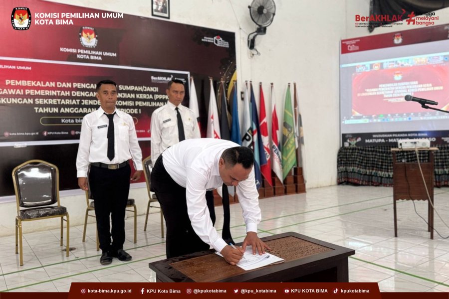 Sekretariat Jenderal Komisi Pemilihan Umum (KPU) melaksanakan kegiatan Pembekalan dan Pengambilan Sumpah/Janji Pegawai Pemerintah dengan Perjanjian Kerja (PPPK) Periode I Tahun 2024 yang berlangsung secara daring pada hari ini, dimulai pukul 08.00 WIB hingga selesai.