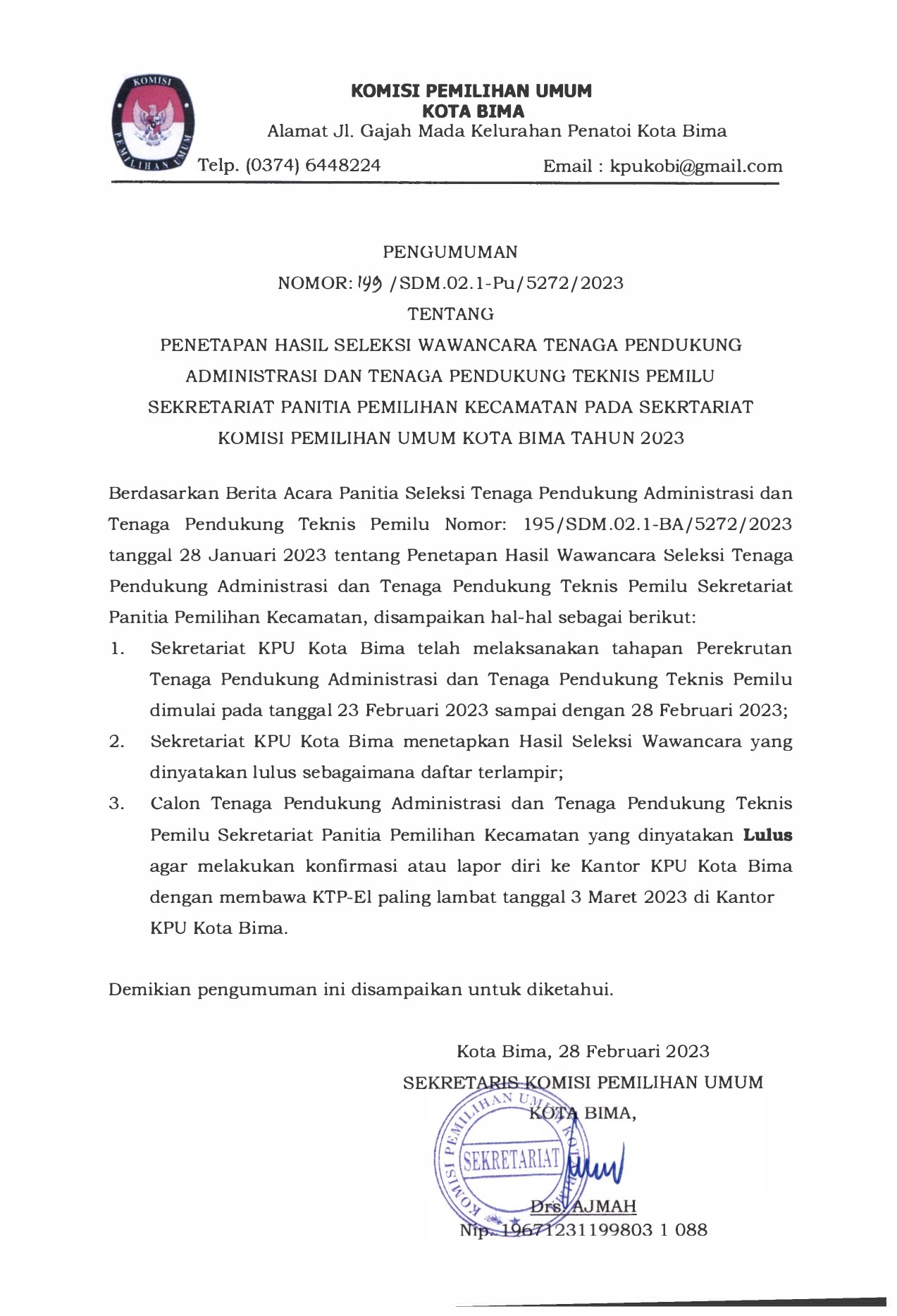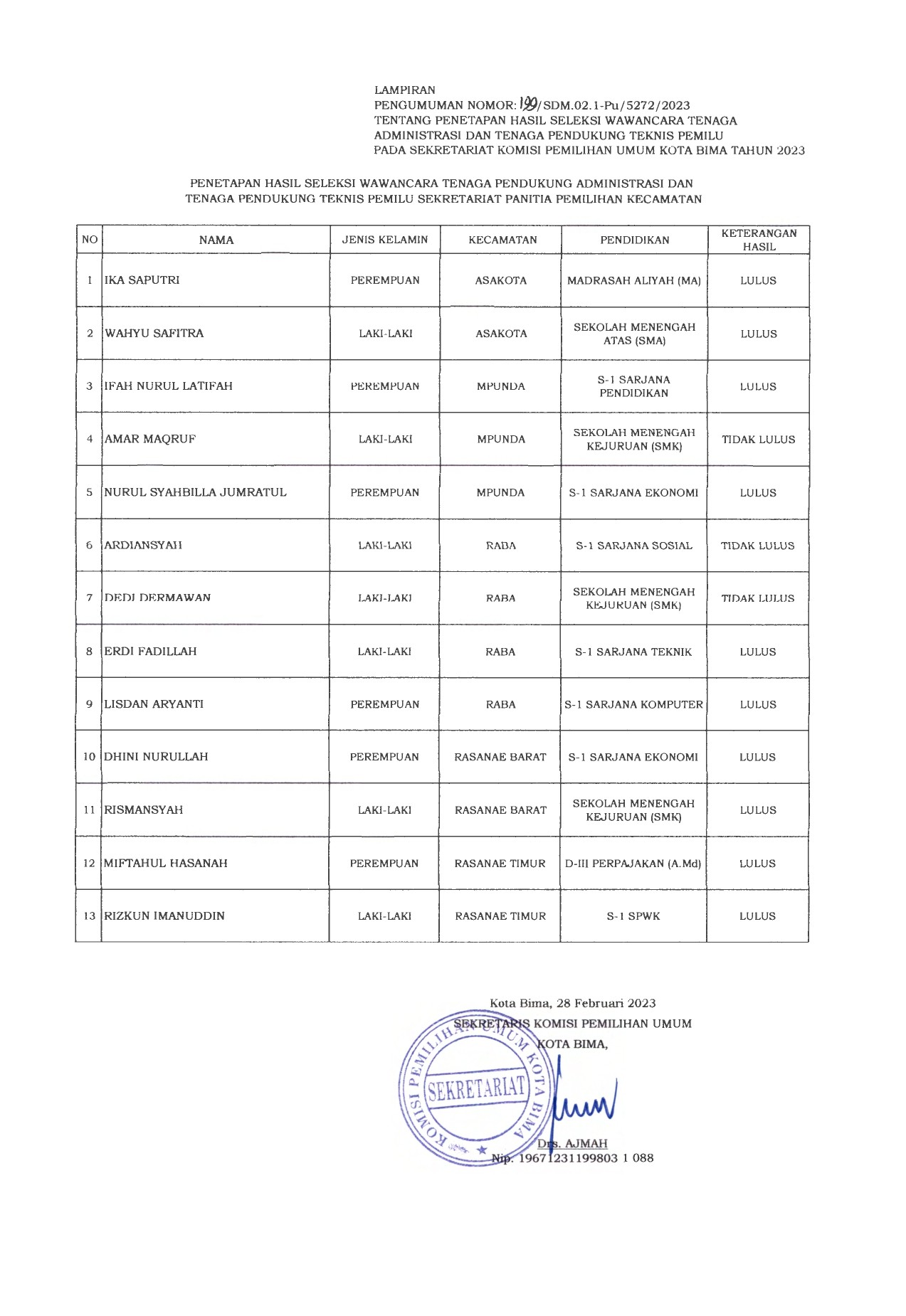 PENGUMUMAN PENETAPAN HASIL SELEKSI WAWANCARA TENAGA PENDUKUNG PPK