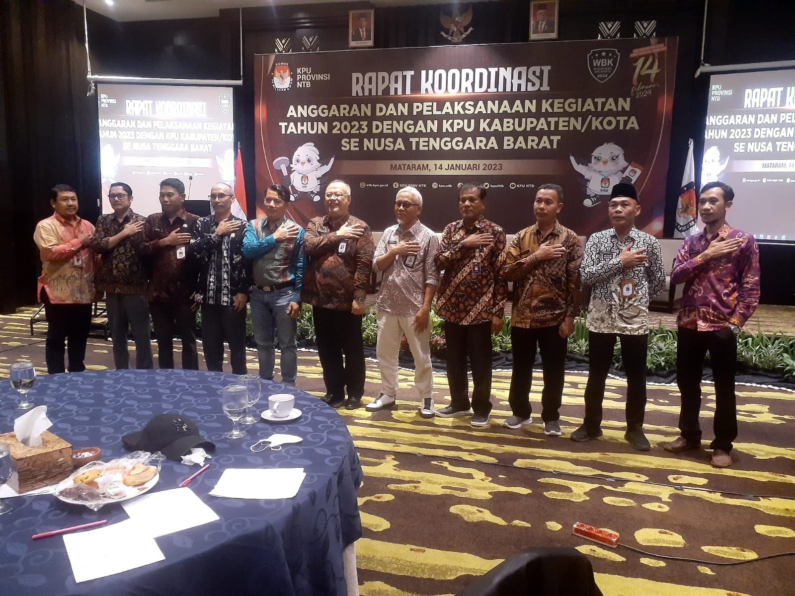 #Temanpemilih, Mengawali Tahun 2023 ini, KPU Provinsi NTB menggelar Rapat Koordinasi Anggaran dan Pelaksanaan kegiatan Tahun 2023 dengan KPU Kab/Kota se NTB di Hotel Astoria Mataram (sabtu, 14/1/2023). Turut hadir dalam kegiatan tersebut yaitu Sekretaris, Pejabat Pembuat Komitmen (PPK) serta Kasubbag Data dan Informasi KPU Kabupaten/Kota s Se- Provinsi NTB. Dalam kegiatan ini , KPU Provinsi NTB juga melaksanakan penandatangan Pakta Integritas antara Ketua KPU Provinsi NTB dengan Sekretaris KPU Provinsi, Serta antara Sekretaris NTB dengan Kabag di lingkup Sekretariat KPU Provinsi NTB.