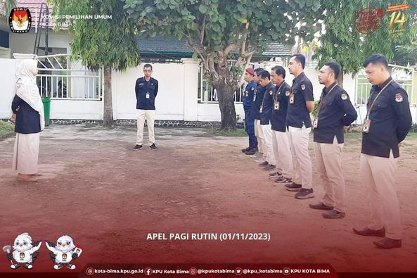 Rabu 1/11/2023) KPU Kota Bima melaksanakan Apel rutin pagi.