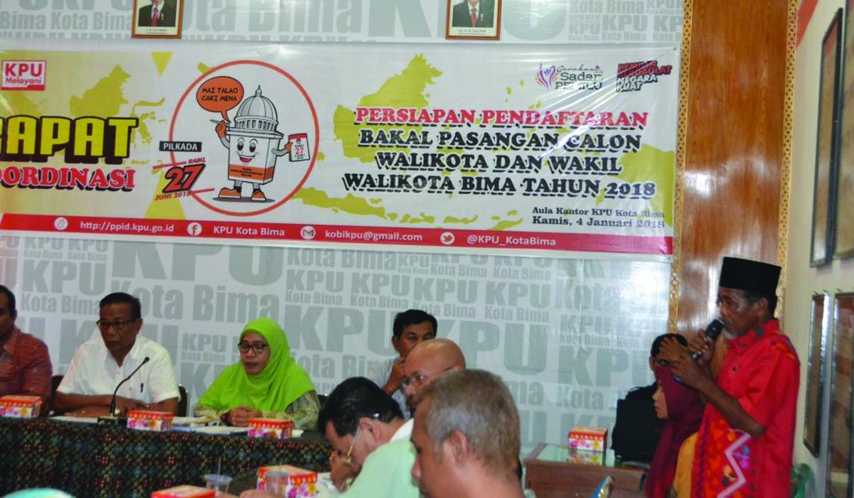 Kota Bima (4/1) – Pendaftaran Bakal Calon Walikota dan Wakil Walikota Bima Tahun 2018 yang sesuai tahapan sepekan lagi akan dibuka yakni tanggal 8 – 10 Januari 2018 (lihat pengumuman KPU Kota Bima Nomor 482 Tahun 2017).