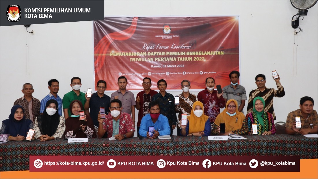 KOTA BIMA,_ Komisi Pemilihan Umum Kota Bima, Kamis (31/3/2022) melaksanakan kegiatan Rapat Forum Koordinasi Pemutakhiran Daftar Pemilih Berkelanjutan (PDPB) Triwulan Pertama Tahun 2022. Kegiatan yang dilaksanakan di aula kantor KPU Kota Bima itu menghasilkan sejumlah rekomendasi, satu diantaranya adalah melibatkan Partai Politik pada kegiatan Rapat Forum Koordinasi PDPB yang dilaksanakan setiap tiga bulan sekali itu.