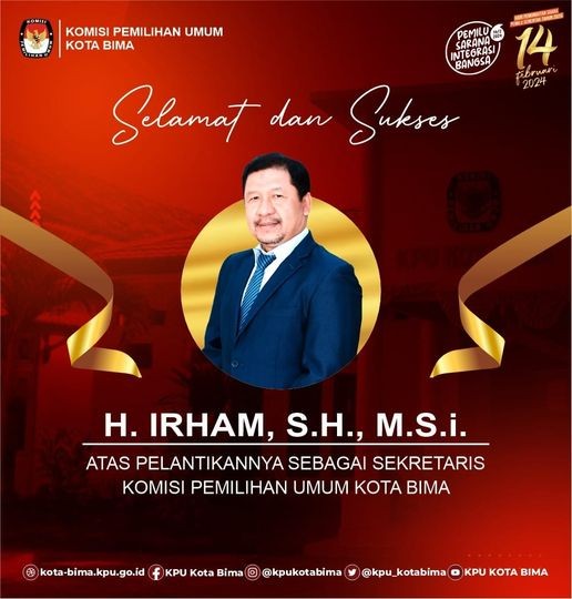 #TemanPemilih, Selamat Datang kepada H.IRHAM,S.H.,M.S.i Keluarga Besar KPU Kota Bima mengucapkan Selamat dan Sukses atas dilantiknya sebagai Sekretaris KPU KPU Kota Bima.