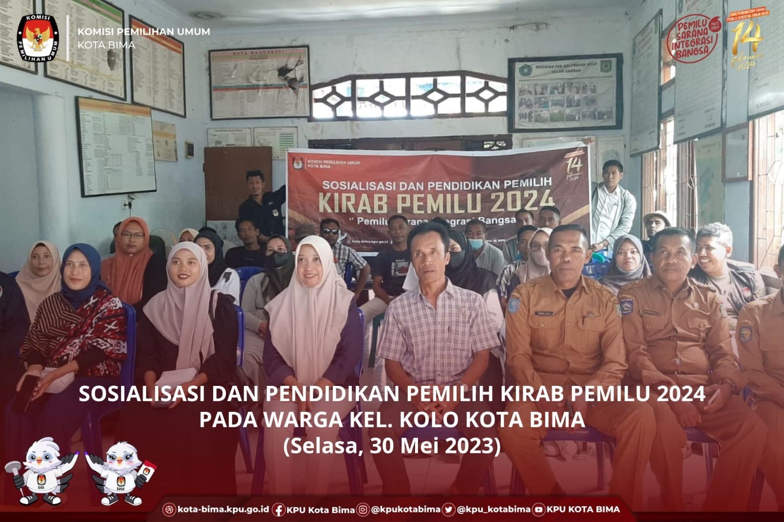 Kegiatan sosialisasi Tahapan Penyelenggaraan Pemilu di Kelurahan Kolo Kecamatan Asakota Kota Bima bekerja sama dengan Pemerintah Kelurahan, PPK Asakota dan PPS se Kecamatan Asakota. Dengan sasaran sosialisasi, Segmen Pemilih Perempuam, Tokoh Agama, Tokoh Masyarakay, Pemilih Muda, Pemula dan sleuruh masyarakat Kelurahan Kolo.