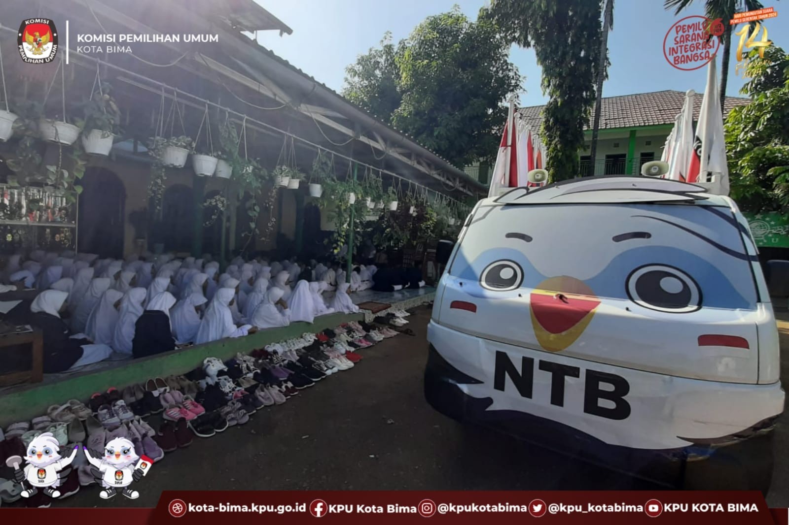 Pada kegiatan tersebut KPU Kota Bima juga membagikan bahan Sosialisasi berupa Kaos Maskot Pemilu, Stiker hari pemungutan suara, Pin hari pemungutan suara, Stiker Nomor Urut dan Lambang Partai, Stiker Tahapan Pemilu dan Balpoint souvenir.