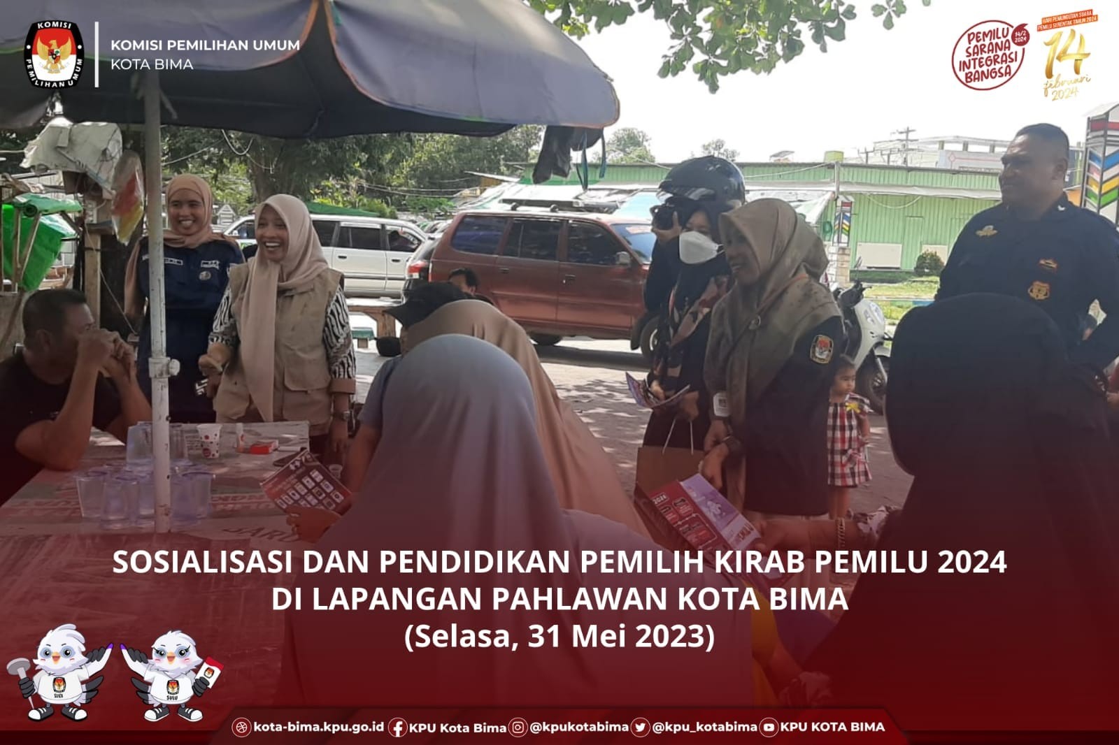 Teman Pemilih, hari ini, Rabu tanggal 31 Mei 2023 merupakan hari ke lima pelaksanaan Kirab Pemilu Tahun 2024 Jalur VI di KPU Kota Bima. Kegiatan ketiga yang kami laksanakan adalah Sosialisasi keliling di Lapangan Pahlawan Kecamatan Raba Kota Bima.