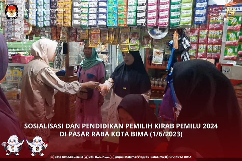 Kegiatan sosialisasi Tahapan Penyelenggaraan Pemilu di Pasar Raba Kota Bima bekerja sama dengan Pemerintah Kelurahan Rabangodu Utara Kecamatan Raba Kota Bima dan juga PPK serta PPS se Kecamatan Raba. Dengan sasaran sosialisasi adalah Pengunjung dan pedagang Pasar Raba.