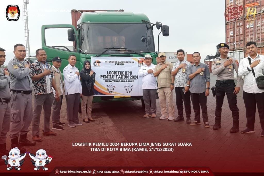 Ketua KPU Kota Bima, Mursalin menjelaskan, surat suara Pemilu 2024 untuk Kota Bima yang dicetak oleh PT. Temprina Jawapost Group dan dikirim menggunakan jasa pengiriman PT. Cabe Raya Ekspress tersebut tiba di Pelabuhan Bima pada hari Rabu (20/12/2023). Dengan rincian surat suara yang diterima berupa, surat suara DPRD Kota Bima DAPIL Kota Bima 1 sebanyak 25.027 lembar.